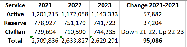 From 2020 to 2023, the U.S. armed forces population declined by approximately 95,000 civilian, reserve, and active-duty personnel, according to federal data. While conventional counts claim approximately just 8,400 of these left over the mandate, numerous sources told The Federalist most of that 95,000 likely left over the mandate but didn’t cite it due to military mistreatment of those who requested exemptions. Instead, those who could discreetly took early retirements or declined to re-up their service.
