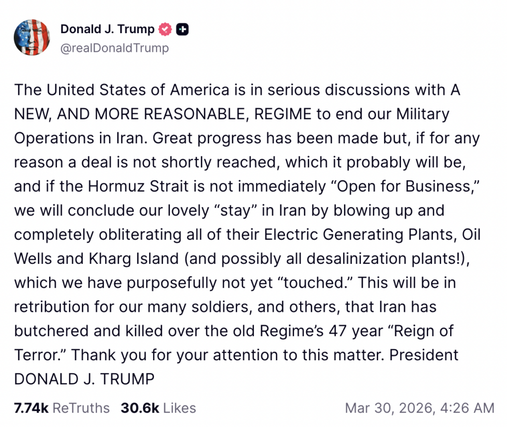 Finally, a March 30 story from the Associated Press presents at least some evidence that Arab states in the Middle East also want more war: “Gulf allies privately make the case to Trump to keep fighting until Iran is decisively defeated.” You can take a bunch of anonymously sourced claims for what they’re worth, but this is at least a plausible guess about Arab countries that have never been comfortable with the Persian theocracy: