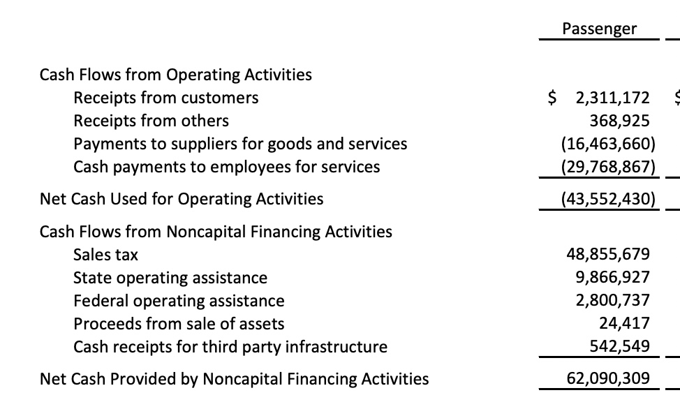 So –$43.5 million “Net Cash” for operations, and note the minus sign in front of that figure, with over $60 million in funding from local taxes and government grants but just $2.3 million from passengers. About $47 million in annual operating costs, not counting construction costs, to serve a few thousand passengers. Name the private sector business that survives with a $30 million payroll and $2.3 million in receipts from customers.