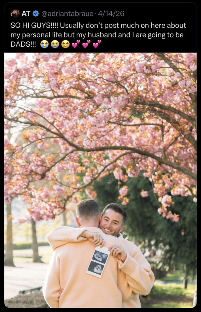 The second is a pregnancy announcement posted by two men. The photo shows an ultrasound. One of them provided the sperm. The egg was bought from a donor. The womb belongs to a surrogate they hired. Neither of those two women appears in the post. The caption reads: “SO HI GUYS!!!! Usually don’t post much on here about my personal life but my husband and I are going to be DADS!!! 😭😭😭💕💕💕” It is as though the two men did this themselves.